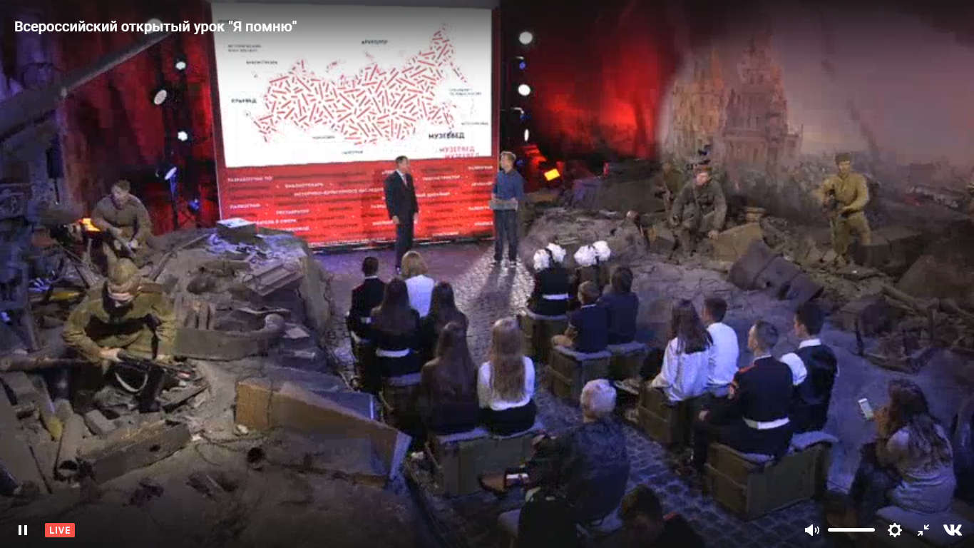 Урок был посвящен теме "Я помню"по истории Великой отечественной войны.Министр образования Васильева О.Ю. рассказала о значимости исторических знаний в жизни человека. Перед глазами слушателей промелькнули картины героических событий Великой Отечественной войны.Удалось виртуально посетить знаменитые музеи,хранящие и рассказывающие о важнейших событиях страны.На уроке рассказали о том, каким должен быть современный музей и как переводятся на цифровые носители исторические архивы. Учащиеся познакомились с новыми профессиями.
