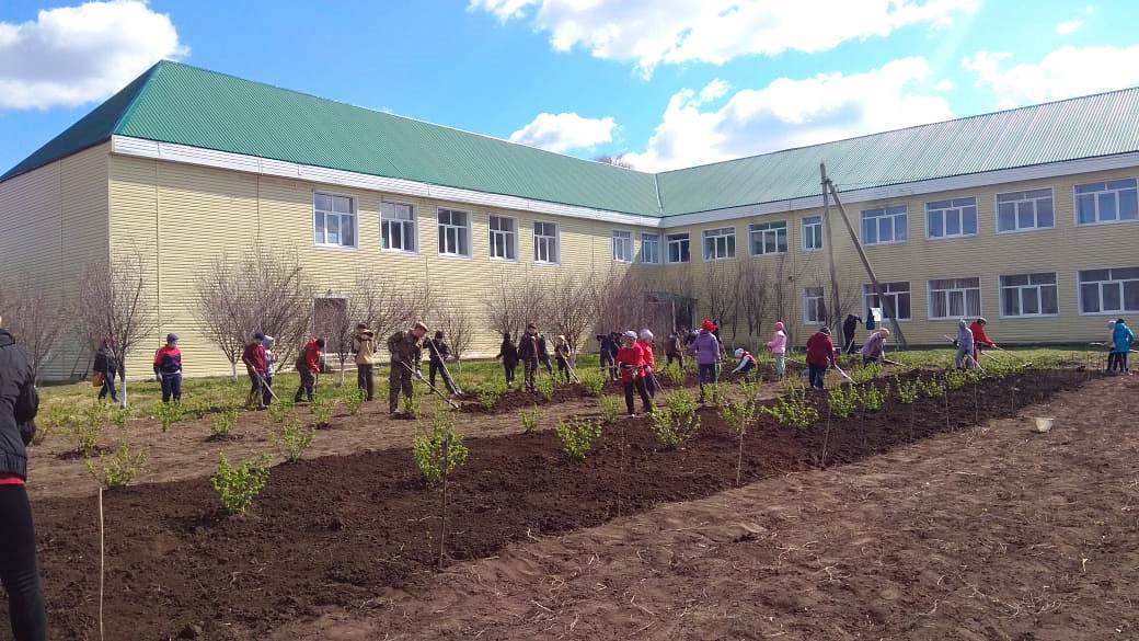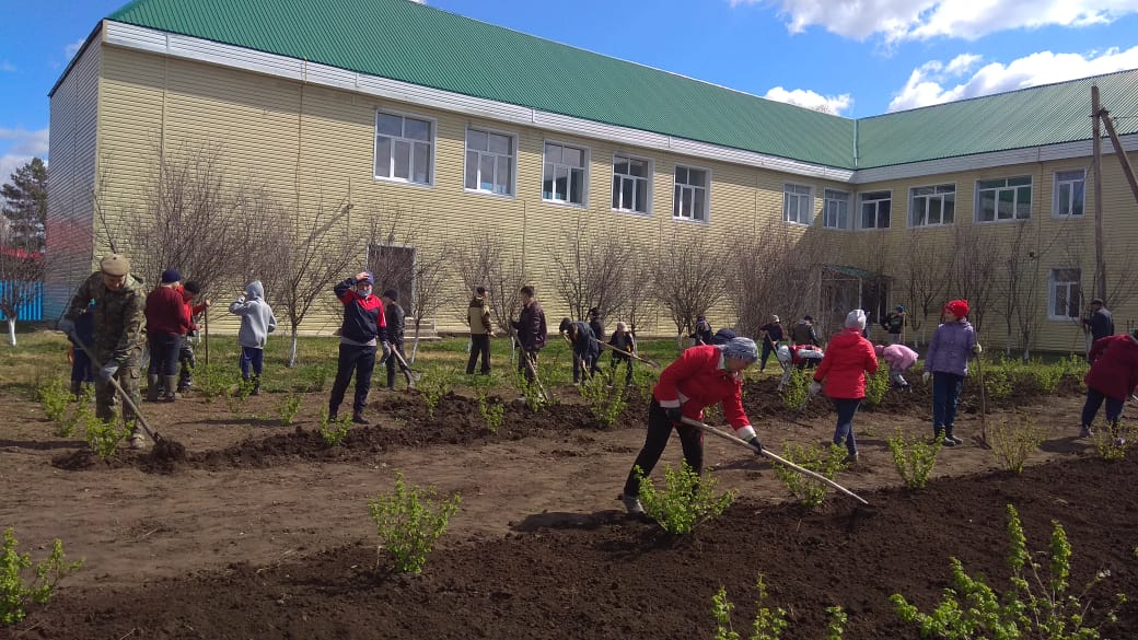 В субботнике приняли активное участие учащиеся 5,6,7,8,10 классов.Была организована очистка территории памятников павшим солдатам в годы Великой отечественной войны,побелка бордюров,очистка от мусора.Большая работа проделана в УОУ.Посажены 30 кустов смородины.